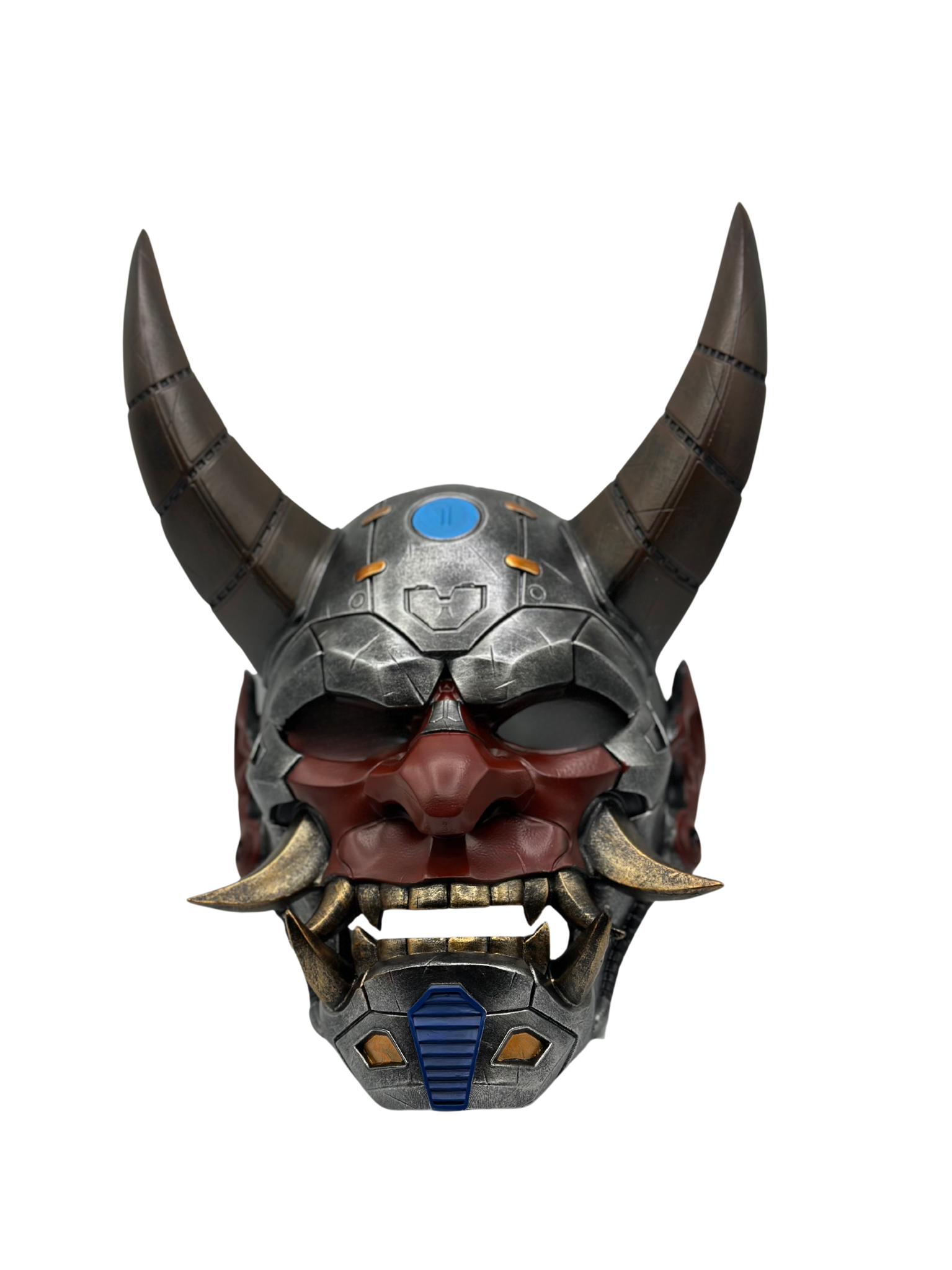 Tragbare japanische Oni-Maske – handgefertigte Dämonenmaske aus Harz im mechanischen Stil – Samurai-Maske
