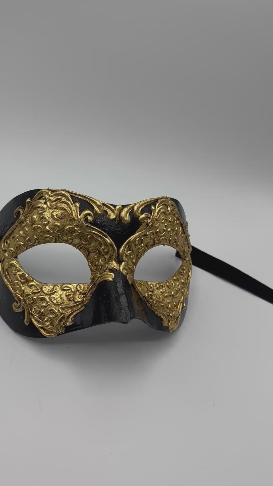 Choose style, class, and mystery with this black and gold men’s masquerade mask.