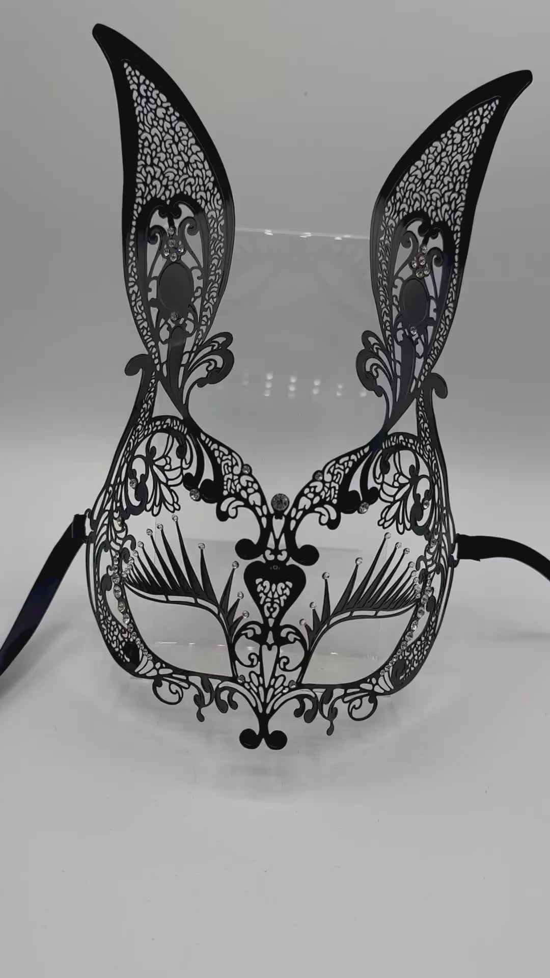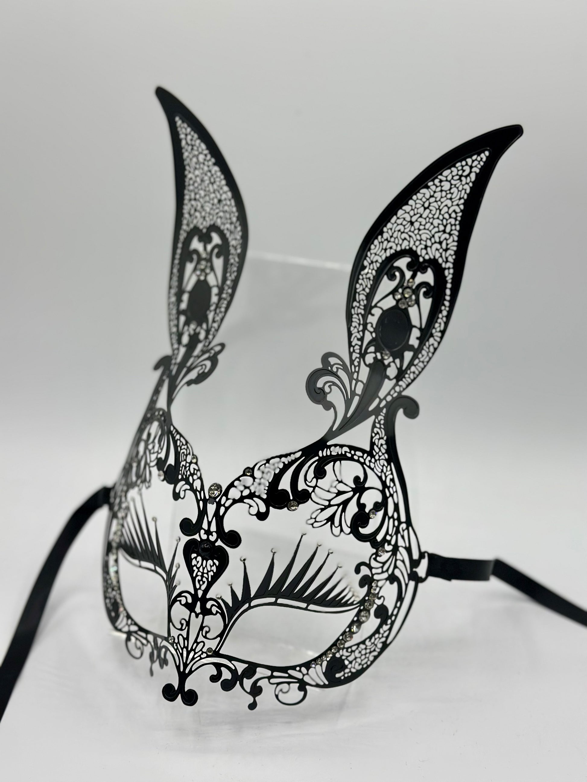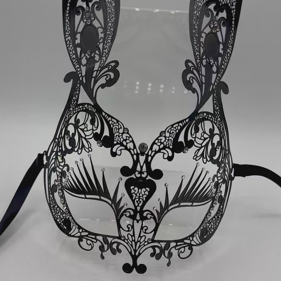 ¡Esta máscara de conejito de encaje de metal de filigree negro está casi por peso, ya que la usa y es muy probable que sea la máscara más cómoda que jamás usará!